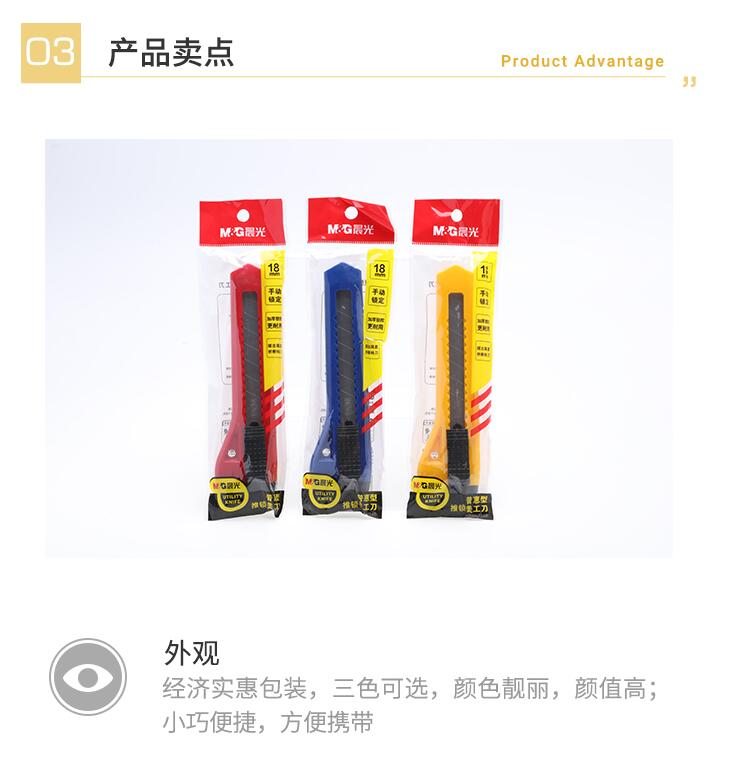 晨光美工刀 美工刀3把 大號壁紙刀小刀裁紙刀片快遞刀美工刀片工業用手動推鎖美術刀學生削筆刀